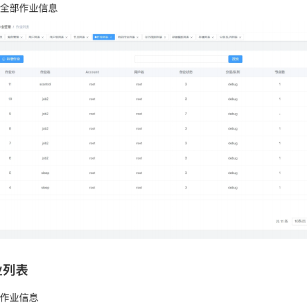登录Elst资源管理系统1、用户管理1.1用户列表1.2新建用户1.3同步集群用户到Elst系统1.4同步Elst用户到集群(此功能适用于重新部署LDAP系统的情1.5其他功能2、用户组管理2.1用户组列表2.2新建用户组2.3其他功能3、节点管理3.1节点列表3.3新增节点3.3节点监控3.4其他功能4、分区/队列管理4.1分区列表4.2新建分区4.3其他功能5、作业管理5.1作业列表5.2我的